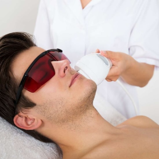 Trattamento Uomo per l’eliminazione definitiva, con tecnologia laser diodo 808 e azione sul bulbo pilifero attraverso l’utilizzo di specifico manipolo, dei peli superflui nella zona del viso.